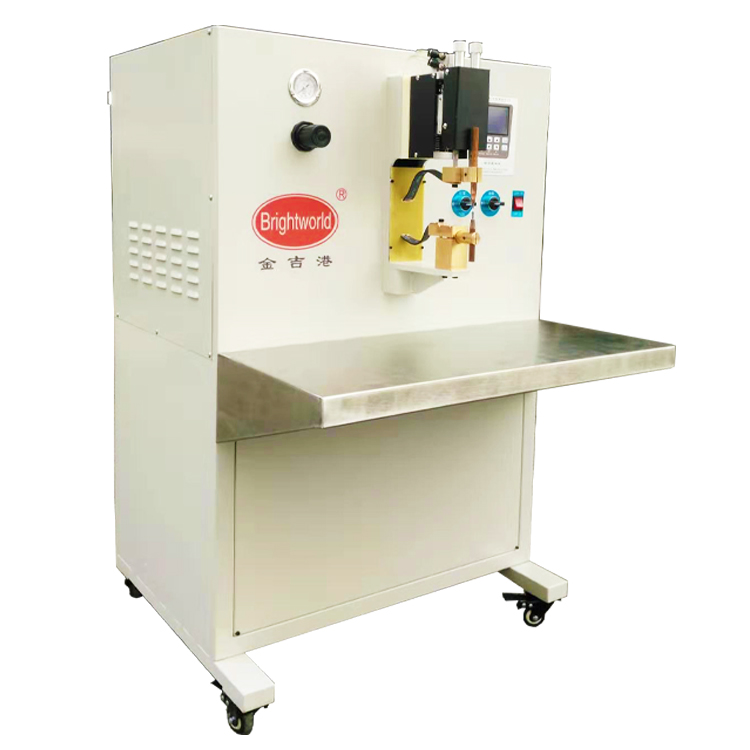 4)帶上手套,備好工件同樣材質(zhì)的廢料,須跌加一起,手動(dòng)放入電極頭中間位置,踩動(dòng)腳踏開(kāi)關(guān),即完成一次焊接,發(fā)現(xiàn)工件未焊牢固,再加大焊接電流至22%,不可一次調(diào)得太高,以免炸火有飛濺,傷及工人,調(diào)了電流之后如還是不能焊牢,再調(diào)長(zhǎng)焊接時(shí)間,每次加長(zhǎng)5~10ms,如此試焊幾次之